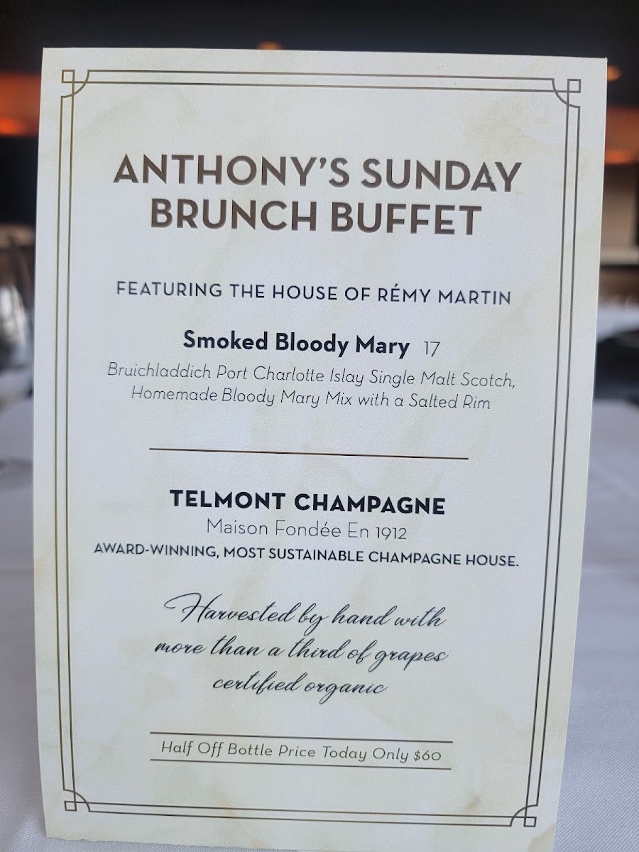 The menu at Anthony's is a masterpiece, showcasing an impressive selection of USDA Prime Beef and Black Angus Dry Aged choices that will tantalize your taste buds. Indulge in the Bone-In Filet, a luscious 18 oz cut priced at $79, or savor the robust flavors of the 22 oz Bone-In RibEye for just $69. For those seeking a more tender option, the Bone-In New York Striploin promises a melt-in-your-mouth experience for $69. And if you are in the mood for something extra special, treat yourself to their exclusive selection of ports and Madeira wines, enhancing your meal in ways you never imagined.